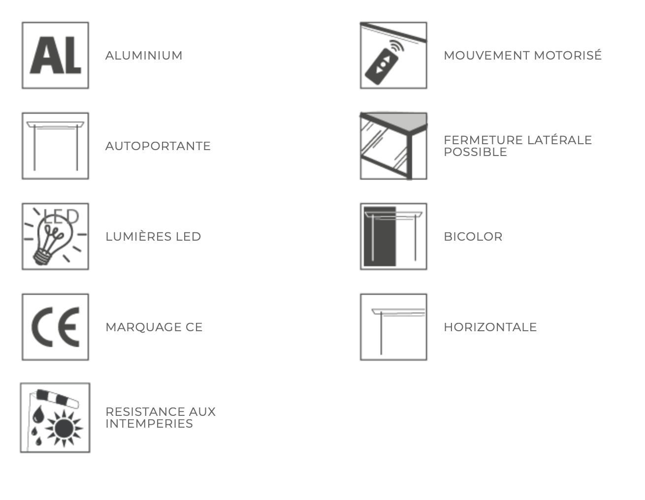 La voile peut pivoter de 360 degrés dans la version auto-porteuse ou de 90 degrés dans la version murale