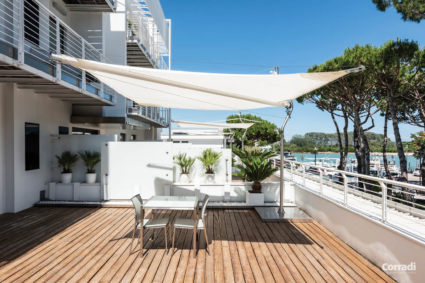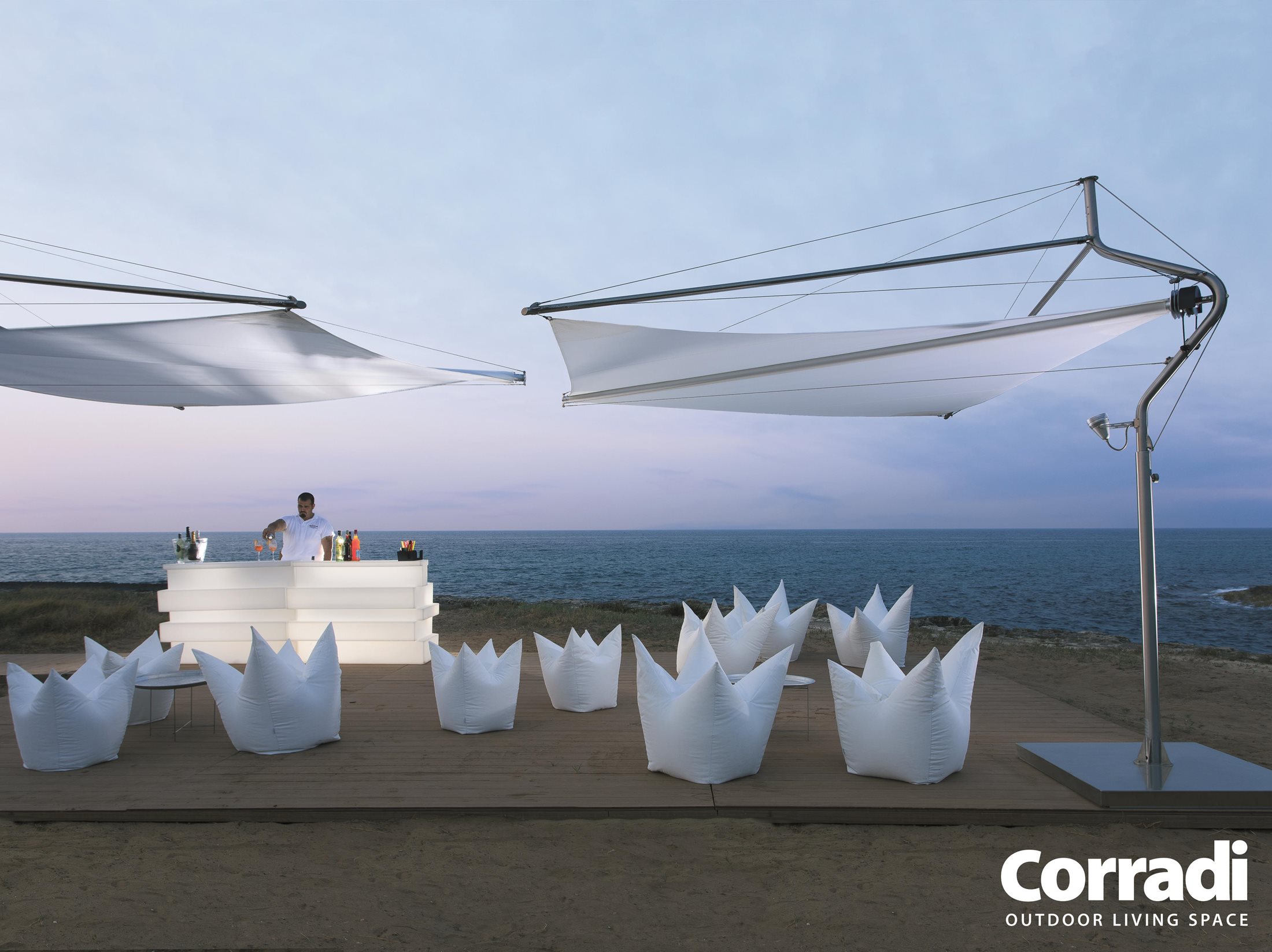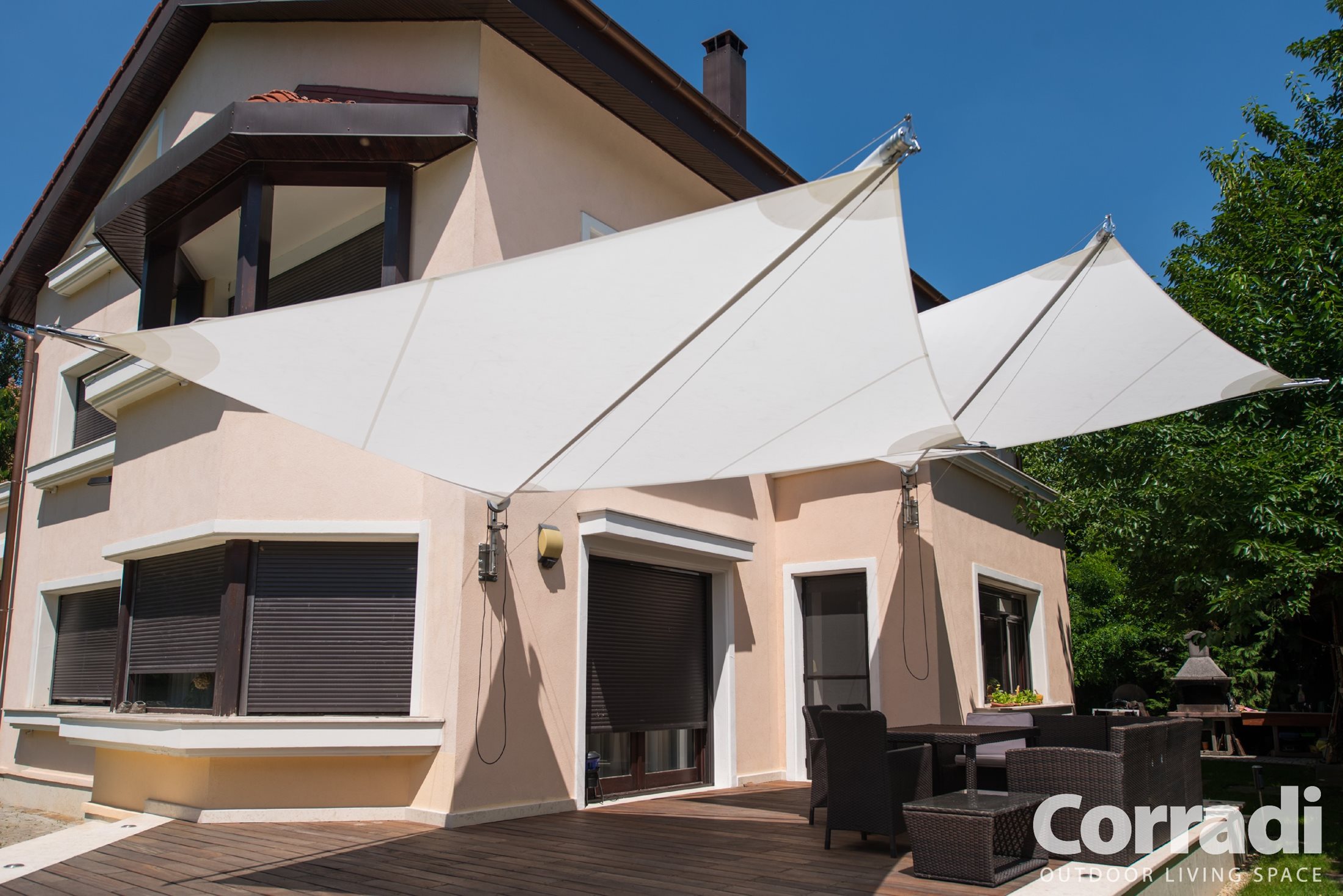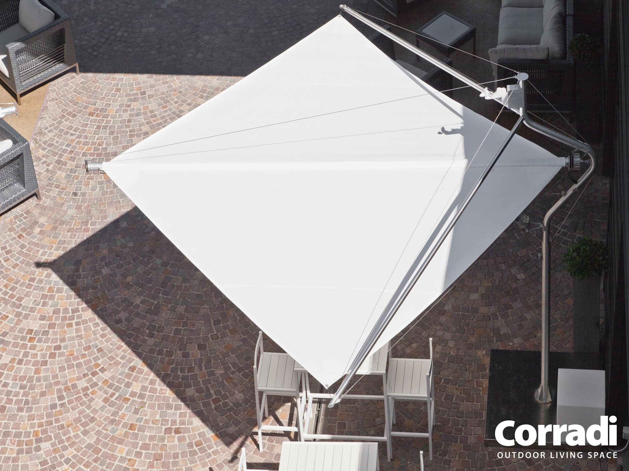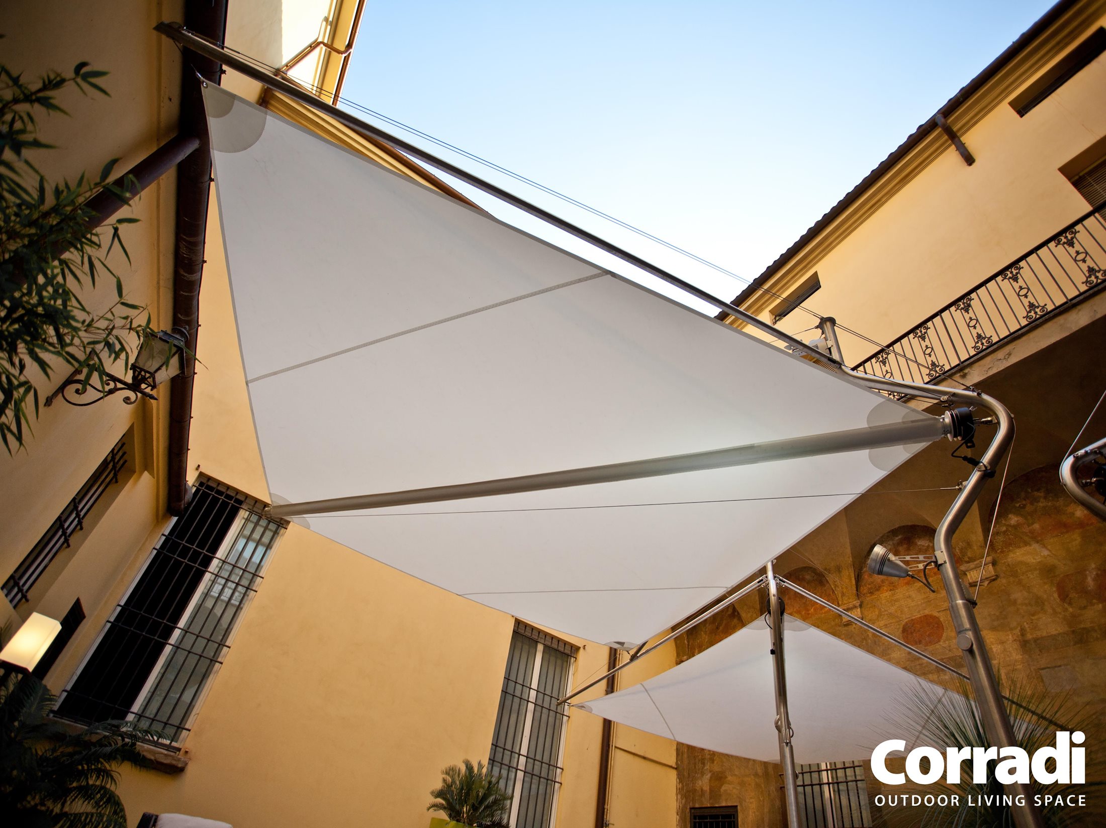 Les Sun Sails Defense représentent le meilleur du design italien, reconnu parmi les objets les plus représentatifs du Made in Italy pour son esthétique et sa fonctionnalité remarquables. Redéfinissez votre espace extérieur avec élégance et style grâce à la Defense de Corradi. »